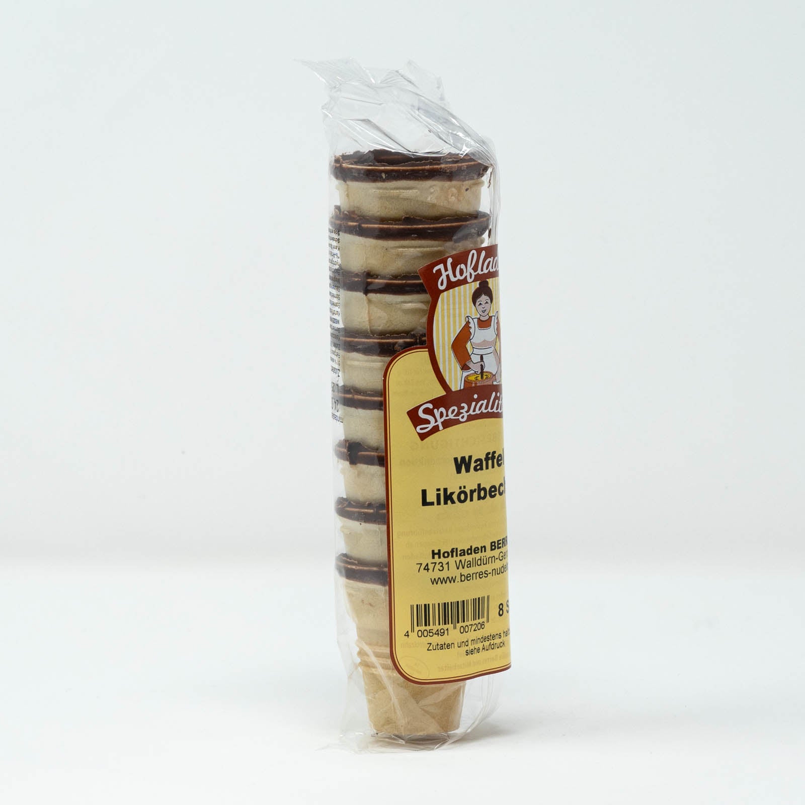 Knusprig und mit Schokolade verziert bringen unsere Waffelbecher bringen ein Stück Kindheitserinnerung zurück. Hergestellt aus goldbraun gebackener Waffel mit zarter Süße, sind sie die ideale Begleitung für kleine Genussmomente. Ob gefüllt mit cremigem Eierlikör aus eigener Herstellung, feiner Schokolade oder einer Kugel Eis. Die Becher verbinden handwerkliche Qualität mit regionalem Charme. Sorgfältig verpackt zu acht Stück, warten sie nur darauf, Desserts und Getränke zu veredeln.
